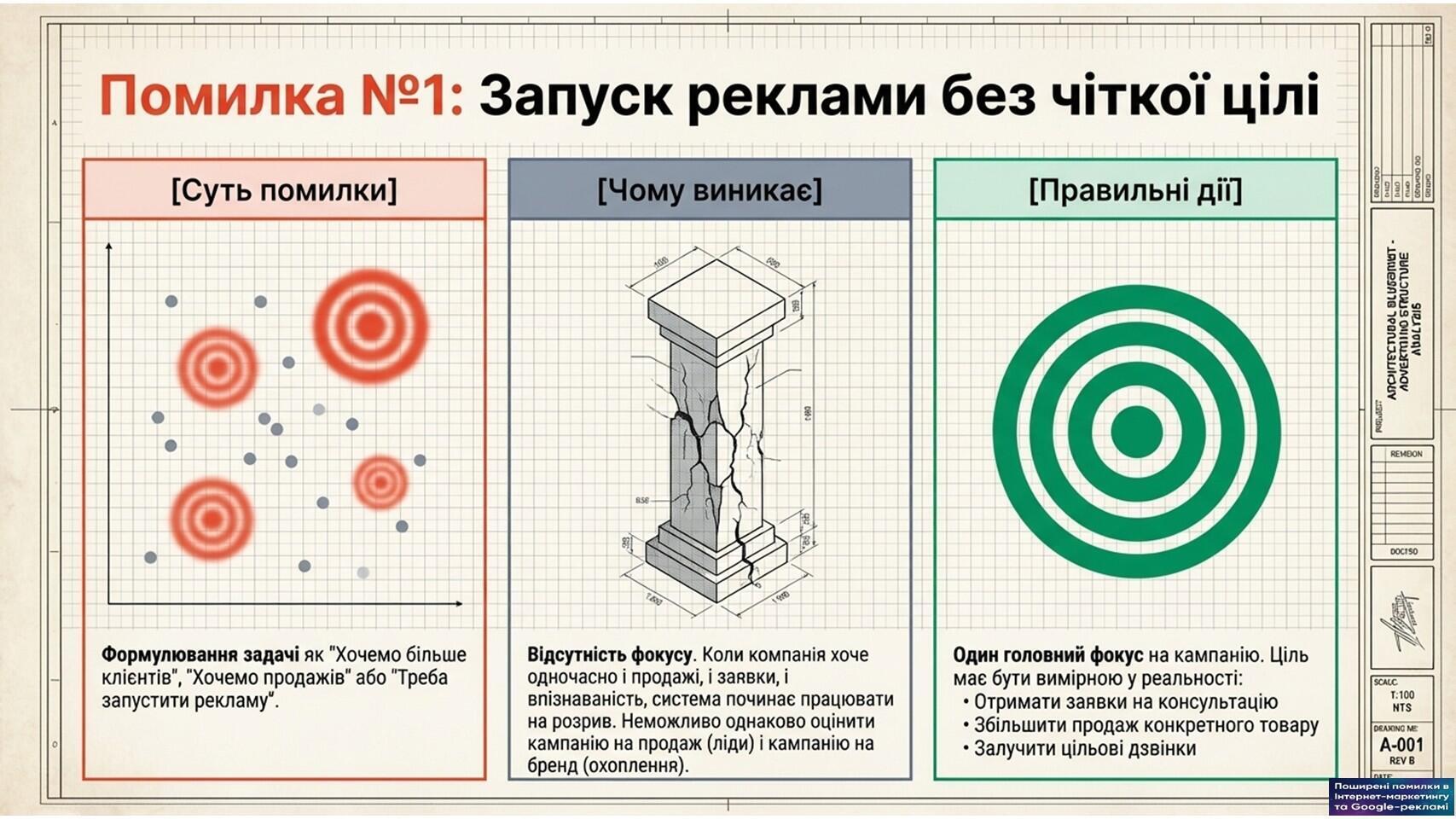 Перша і, мабуть, одна з найпоширеніших помилок у маркетингу — це запуск реклами без чітко визначеної цілі.